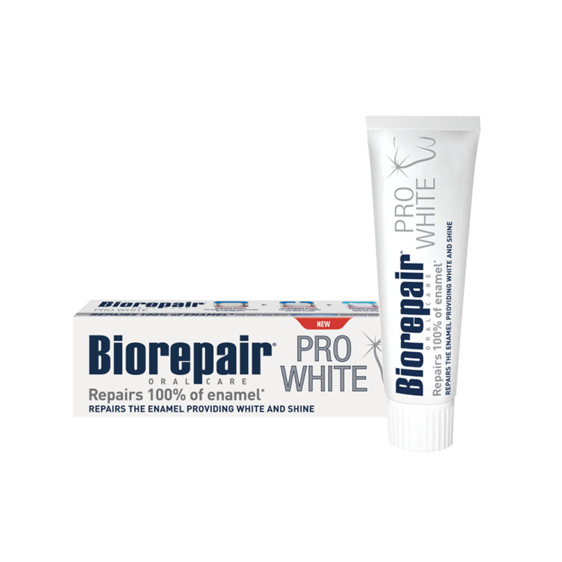 Почувствайте увереността на сияйна усмивка с Biorepair Pro White – избелваща паста за зъби, която не само възстановява емайла, но и избелва зъбите по естествен и щадящ начин. 💧 С иновативната технология на microRepair и избелващия PVP полимер, тя действа в дълбочина – поправя микропукнатини, реминерализира емайла и предпазва зъбите от ежедневната ерозия.