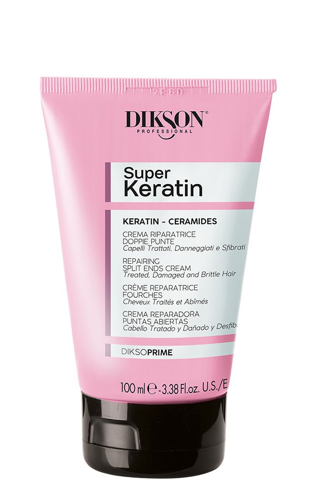 Dikson Super Keratin крем 100 мл е професионален възстановяващ продукт, създаден специално за суха, увредена и химически третирана коса. Благодарение на формулата, обогатена с кератин, кремът подпомага възстановяването на увредената структура на косъма, като укрепва и изглажда косата по цялата ѝ дължина.