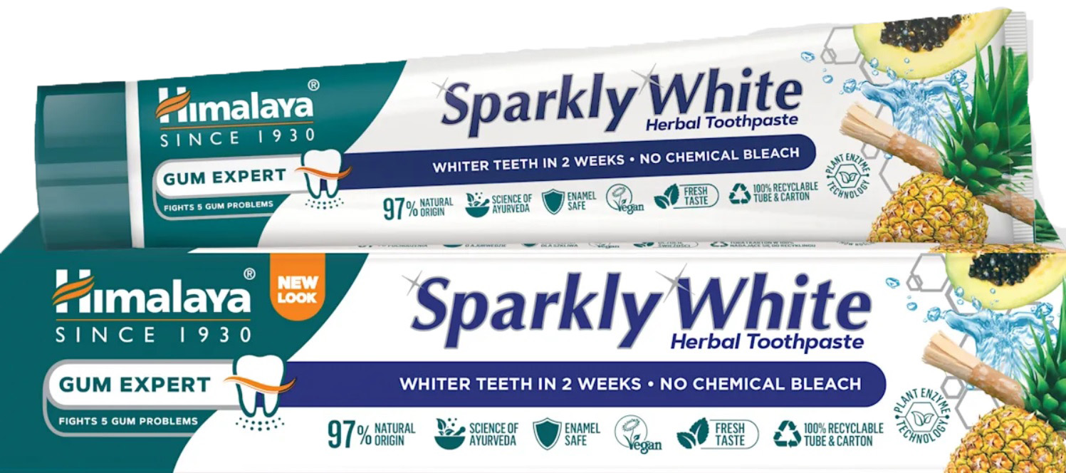Открийте силата на Himalaya Sparkly White Herbal Toothpaste – билкова паста за зъби, вдъхновена от Аюрведа и създадена с 97% съставки от естествен произход 🌿. Уникалната формула без химически избелители изсветлява усмивката само за 2 седмици, като премахва петна и възвръща естествената белота ✨.