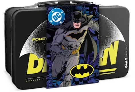 Метално куфарче — стилна и здрава опаковка с дизайн на Batman, удобна за съхранение или носене; прави комплекта особено подходящ за подарък.