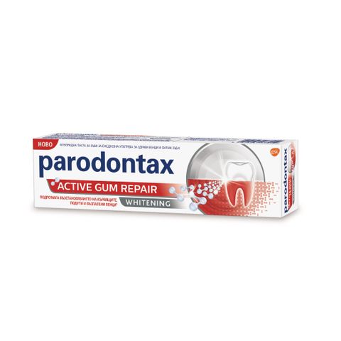 Открий силата на възстановяването с Parodontax Active Repair Whitening – паста за зъби, която активно се бори с натрупването на бактериална плака и помага за възстановяване здравето на венците. Формулата с станозен флуорид прониква дълбоко, за да повлияе първите симптоми на възпаление и да спомогне за намаляване на кървенето.