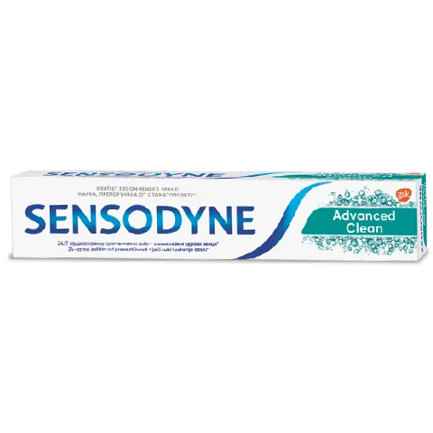 Открий следващото ниво на грижа със Sensodyne Advanced Clean – паста, създадена да облекчава чувствителността и да осигурява дълбока хигиена в устната кухина. 💧 Съдържа калиев нитрат, който действа директно върху зъбните канали и нервните окончания, облекчавайки болката и дискомфорта.